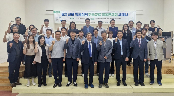 | ↑↑ 제64차 전북 빅데이터 기술교류 공동연구회 세미나 참석자들이 기념촬영을 하고 있다. |