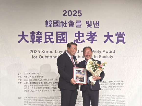 무주농협 곽동열 조합장이 지난 19일 백범김구기념관 컨벤션홀에서 열린 ‘2025 대한민국 충효대상’ 시상식에서 ‘2025 대한민국 신지식농업경영인대상’을 수상하는 영예를 안았다고 밝혔다. 이번 수상은 지역 농업인의 소득 향상과 농협의 자립 기반 확충, 미래지향적 농업 경영혁신에 기여한 공로를 인정받아 받게 되었다. 곽동열 조합장은 ‘무주군 농업인들과 함께 일궈낸 값진 성과’라며, 앞으로도 지역 농업의 지속 가능한 발전을 위해 더욱 헌신하겠다‘고 말했다. 이번 시상식은 한국언론인협회가 주관하고, 사회 각 분야에서 충(忠), 효(孝)를 바탕으로 한 사회 각계각층의 공로자들을 발굴해 그 노고를 치하하고, 사회 전반에 바람직한 리더십을 확산시키기 위해 매년 열리고 있다./무주=김정오기자 |
