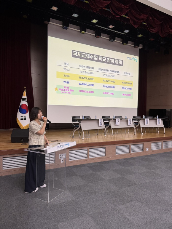 발표에 나선 교사들은 러시아, 우즈베키스탄 등 다국적 학교와의 협업 경험, 산림청 등 외부기관과의 연계 프로젝트, 주제 중심 프로젝트형 수업, 특성화고 전공과 연계한 국제교류 사례 등을 소개하며 교육 현장의 생생한 경험을 공유했다.