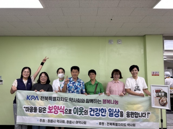 정읍시약사회(회장 강영복)와 여약사회(회장 정옥란, 농민약국)는 지난 30일 정읍시장애인종합복지관에서 복지관 이용자를 위한 ‘복날愛(애) 삼계탕’ 나눔 행사를 진행했다. 이번 행사는 무더위 속에서 지친 장애인의 건강 회복을 돕기 위해 마련됐다.