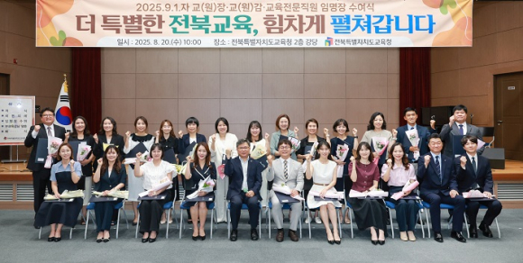 전북교육청, 2025년 9월 1일자 교원·교육전문직 172명 임명장 수여교(원)장 54명·교(원)감 67명·교육전문직 51명 새 출발유정기 권한대행 “전북교육 새로운 도약 이끌어 달라” 당부 조경환 기자 /