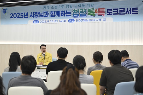 남원시(시장 최경식)는 지난 19일 시청 지하 ‘더 다정해’에서 직원 50여 명이 참석한 가운데 「시장과 함께하는 청렴 톡&톡 토크콘서트」를 성황리에 개최했다고 밝혔다. 이번 행사는 청렴한 인사제도 구축과 조직 내 신뢰 개선을 위한 소통의 장으로 마련됐다.