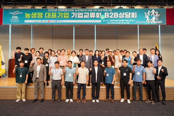전북자치도와 전북바이오융합산업진흥원이 도내 농생명분야 기업들의 판로개척을 위해 상생 협력 체계를 구축하는 자리를 마련했다. 전북특별자치도와 전북바이오융합산업진흥원이 지난 26일부터 27일까지 전북 농생명분야 대표기업의 동반 성장과 지속가능한 상생 협력체계 구축을 위해 '2025 대표기업 교류회 및 B2B상담회'를 개최했다. 이번 행사에는 전북자치도 민선식 농생명축산산업국장을 비롯해 지역 농식품 대표기업 40개사와 국내 주요 바이어 등 총 80여명이 참석했다. 행사 첫날인 26일에는 옹고집, 무주덕유산반딧골 등 지역에서 굳건히 성장해 나가고 있는 대표기업들의 우수사례 발표와 함께 각 참여기업별 소개, 판로 정보 공유 등 기업 간 네트워크를 형성하는 소통의 장이 마련됐다. 또한, 둘째 날인 27일에는 풀무원, CJ프레시웨이, 롯데쇼핑, 희창물산 등 국내 주요 유통기업이 참여한 가운데 대표기업들과의 1:1 B2B상담회가 진행됐다. 유망 대표기업을 중심으로 총 30개사가 바이어별 관심기업을 우선 상담하면서 납품 가능성을 높였으며, 기업의 자금 애로 해소를 위해 전북신용보증재단의 현장상담도 운영됐다. 전북자치도 농생명축산산업국 민선식 국장은 “대표기업 지원사업은 전북 농식품 산업을 한 단계 도약시키는 전략적 사업”이라며, “대표기업 지원사업을 통해 농생명산업이 전북을 대표하는 핵심 산업으로 성장할 수 있도록 전폭적인 지원을 아끼지 않겠다.”고 강조했다. 이은미 바이오진흥원장은 “최근 원자재 가격 상승과 치열한 시장 경쟁으로 기업들이 많은 어려움을 겪고 있는데, 이번 대표기업 육성사업 교류의 장이 위기 극복의 계기가 되기를 바란다.”며 “대표기업이 매출을 늘리고 한 단계 성장할 수 있도록 진흥원이 총력을 기울이겠다.”고 밝혔다. 한편, 전북자치도는 바이오진흥원과 함께 지난 2023년부터 농생명·식품산업 분야에서 성장가능성이 높은 지역 혁신형 유망기업을 발굴, 시제품 제작, 애로기술 해결, 사업화 마케팅 등 전주기 지원을 통해 2032년까지 농생명식품 대표기업 110개사를 육성해 나갈 계획이다./조경환 기자 |