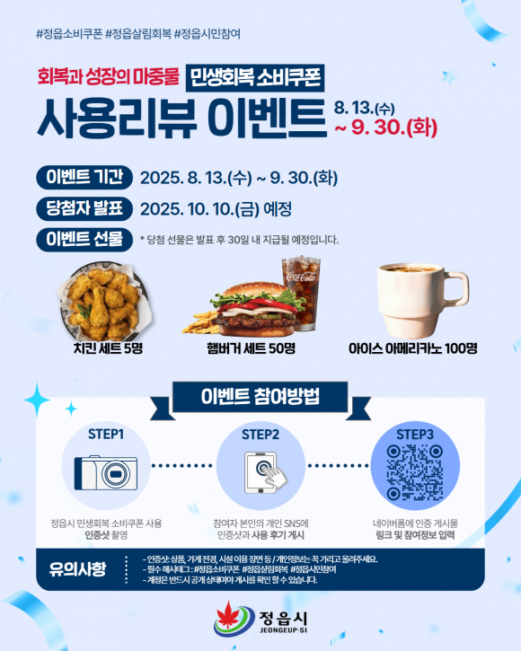 정읍시, 민생회복 소비쿠폰 SNS 인증 이벤트…10월 10일 당첨자 발표
