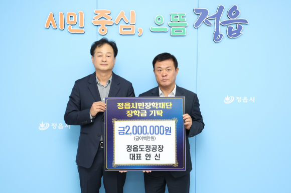 정읍도정공장 안신 대표는 18일 지역의 미래를 이끌 청소년들을 위해 장학금 200만원을 정읍시민장학재단에 기탁했다.