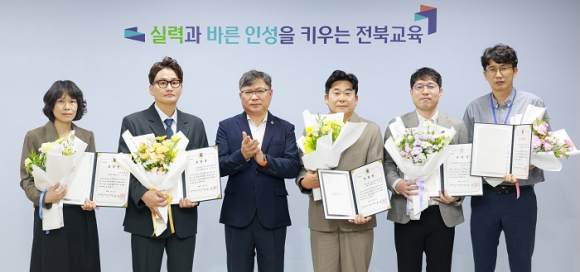전북특별자치도교육청이 창의적이고 적극적인 업무 수행으로 교육행정 혁신에 기여한 공무원 5명을 ‘2025년 상반기 적극행정 우수공무원’으로 선정하고 표창장을 수여했다.