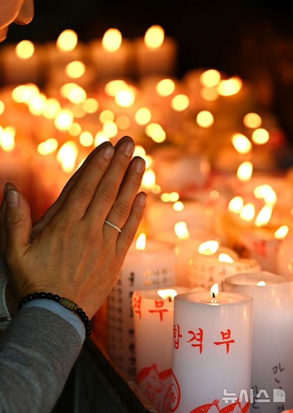 수능을 한달 앞둔 13일 전북 완주군 구이면 대원사를 찾은 수험생 학부모들은 자녀의 수능 고득점을 기원하는 기도를 올렸다.