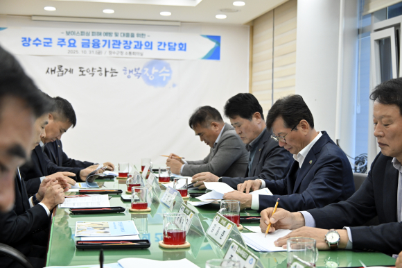 장수군은 지난달 31일 군청 회의실에서 관내 주요 금융기관과 ‘보이스피싱 피해 예방을 위한 간담회’를 개최했다고 밝혔다.