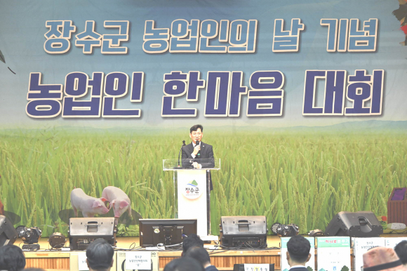 최훈식 장수군수는 “농업인의 날은 우리 군의 주역인 농업인들께 존경과 감사를 전하는 뜻깊은 자리이다”며 “앞으로도 농업인의 소득 안정과 농촌의 지속가능한 발전을 위해 농어촌 기본소득 등 실질적 지원 정책이 시행돼 농업인들이 희망을 갖고 농업에 전념할 수 있도록 최선을 다하겠다”고 말했다.