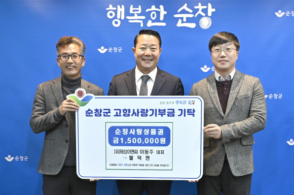 순창군은 15일 (유)태성이앤씨 이동주 대표가 순창군에 고향사랑기부금 500만원을 기탁했다고 밝혔다.