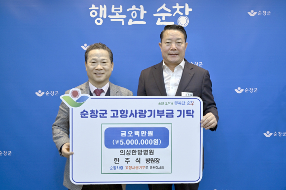 의성한방병원을 운영하는 한주석 병원장이 최근 순창군을 방문해 500만원의 고향사랑기부금을 전달했다.