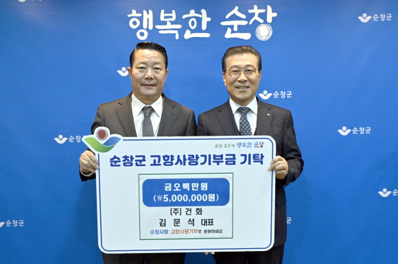 순창군은 15일 ㈜건화 김문석 대표이사가 순창군에 고향사랑기부금 500만원을 기탁했다고 밝혔다.