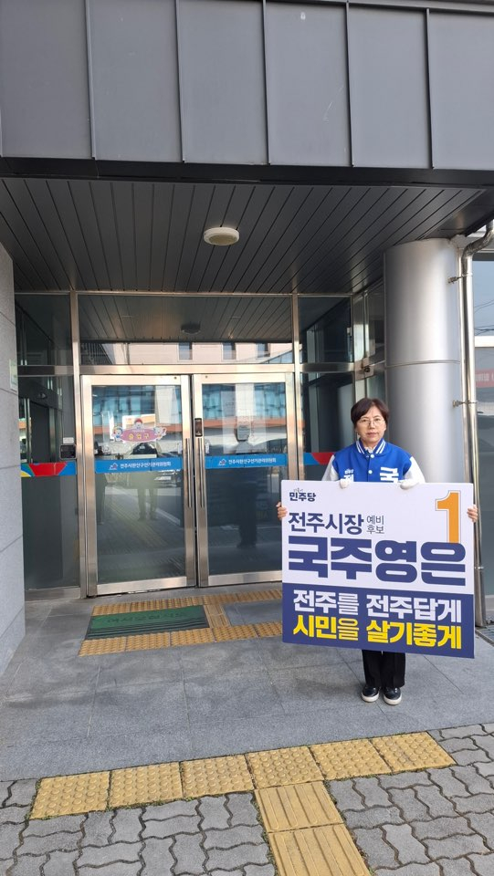 국주영은 예비후보는 5일 전주시선거관리위원회에 전주시장 예비후보로 등록한 뒤 전주시청 기자실을 찾아 출마 의지를 밝혔다. 국주 예비후보는 “지난 20년 동안 시민 곁에서 활동해 온 지방의원 국주영은의 공감 정치를 이제 전주시정 전체로 확대해 전주의 담대한 변화를 이끌어 내겠다”고 말했다.