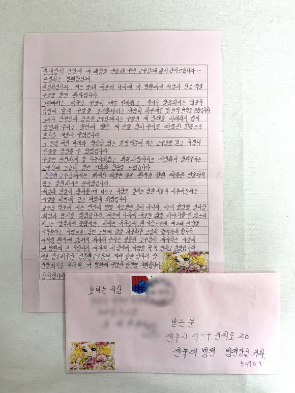 전북대병원 의료진에 80대 환자 손편지 감동