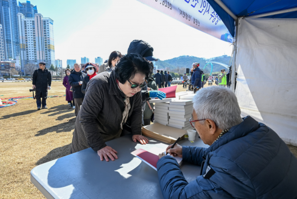 정성수 시인의 신간 산문집 ‘인생 편지’ 출간기념 사인회가 지난 7일 울산 태화강 국가정원 1둔치에서 열렸다.