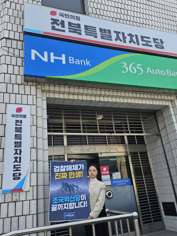 조국혁신당 전북특별자치도당이 기초의원 선거구 개편을 둘러싼 정치권 움직임을 강하게 비판하며 릴레이 시위에 나섰다.