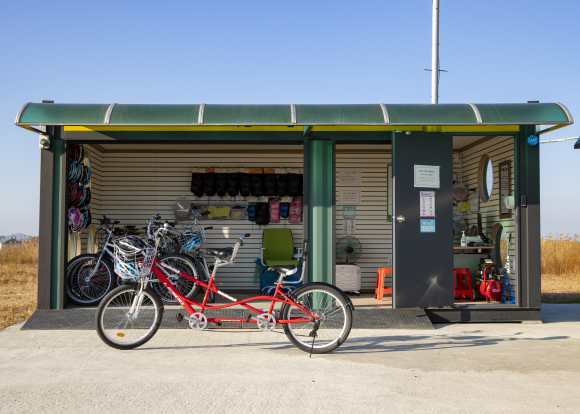 만경강과 웅포 곰개나루 자전거 대여소에는 50대씩 총 100대의 자전거가 비치돼 있고, 1인용뿐만 아니라 2인용과 어린이용 자전거도 마련돼 있다. 이용 시간은 주말과 공휴일 오전 9시부터 오후 6시까지이며, 무료로 이용할 수 있다.