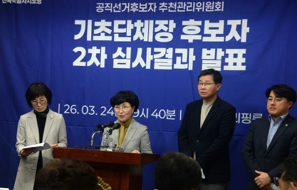 민주당 전북도당 공직선거후보자추천관리위원회는 24일 전북도의회 브리핑룸에서 기자회견을 열고 정읍·남원·김제·완주 등 4개 시군에 대한 2차 심사 결과를 공개했다. 앞서 1차 발표(10개 시군)에 이어 이번 발표로 전북 14개 시군 전체 후보군이 확정됐다.
