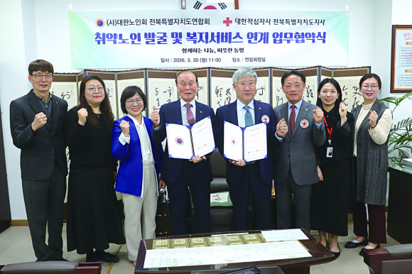 대한적십자사 전북특별자치도지사가 지역 취약노인 보호를 위한 협력 체계 구축에 나섰다. 대한적십자사 전북특별자치도지사는 30일 대한노인회 전북특별자치도연합회와 취약노인 발굴 및 복지서비스 연계를 위한 업무협약을 체결했다고 밝혔다. 이번 협약은 고령화 심화에 따른 노인 빈곤과 건강 문제, 사회적 고립 등 복합적인 위기에 대응하기 위해 마련됐다. 적십자와 대한노인회는 지역사회 기반의 촘촘한 돌봄 체계를 구축하는 데 초점을 맞추고 협력을 강화하기로 했다. 양 기관은 앞으로 취약노인 발굴과 사례관리, 복지서비스 연계, 재난 취약계층 지원 등 다양한 분야에서 협력할 계획이다. 특히 경로당 중심 네트워크와 적십자의 현장 구호 역량을 결합해 실질적인 지원 효과를 높인다는 구상이다. 또한 정기적인 협의를 통해 협력사업을 구체화하고, 지역사회 중심의 노인복지 안전망을 단계적으로 확대해 나갈 방침이다. 김홍식 대한적십자사 전북특별자치도지사 회장은 “고령화로 인해 도움이 필요한 어르신이 계속 늘고 있다”며 “취약노인을 적극 발굴하고 필요한 복지서비스를 신속히 연계해 나가겠다”고 말했다. 김두봉 대한노인회 전북특별자치도연합회 회장은 “경로당 네트워크를 통해 현장에서 어려움을 겪는 어르신을 세심히 살피고, 지속적인 돌봄이 이어질 수 있도록 역할을 다하겠다”고 밝혔다. |