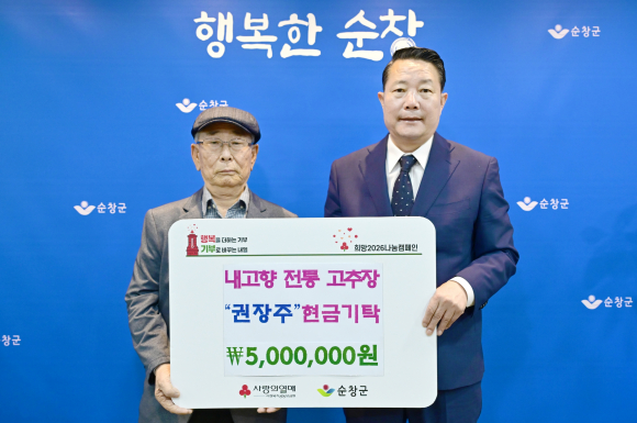 순창군 민속마을에 위치한 내고향 전통 고추장 대표 권장주·양내승 부부는 최근 순창군청을 방문해 지역의 어려운 이웃을 위해 사용해 달라며 성금 500만 원을 기탁해 지역사회에 따뜻한 감동을 전했다.