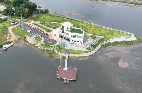 센터는 부지 10,585㎡, 연 면적 499.15㎡(지상 2층) 규모로 조성됐으며, 내부에는 탈의실·샤워실·교육실을, 외부에는 계류장·편의공간·주차장(12면)을 갖추었다.