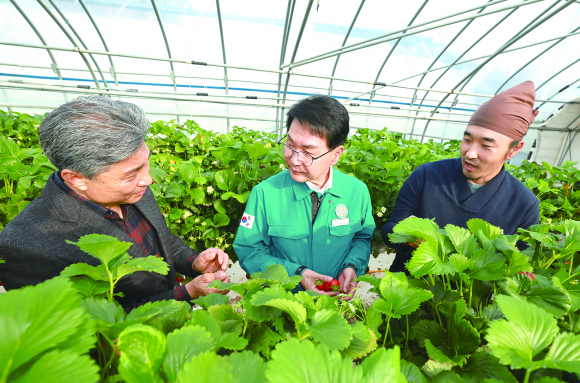 # 미래를 준비하는 첨단 농업과 기후변화 대응 미래 농업의 핵심인 청년 농업인을 위한 ‘스마트팜 단지(성송면)’가 본격 운영된다. 12개 팀의 청년 농업인이 입주하며, 멜론, 수박, 딸기 등 고부가가치 작물을 재배하며 안정적인 정착을 돕는다. 폭염과 자연재해에 취약한 시설하우스 보호를 위해 ‘보강 지주대’와 ‘온도 저감 자재’ 등을 지원하는 신규 사업도 시행된다. 수정벌 지원 품목을 수박, 멜론, 토마토, 딸기, 복숭아, 블루베리, 단호박, 복분자 등 8개 품목으로 늘어나고 사업량을 1만250군으로 사업량을 확대했다.유용미생물 공급 체계도 확대된다. 지속가능한 농업을 위해 총 12억원을 투입하여 ‘북부권 미생물 자동 공급시설’ 구축한다. 이번 시설이 운영되면 유용미생물 주5일 상시 공급 체계가 마련되어 미생물 사용량이 많은 북부권 농가의 접근성이 개선되고, 유용미생물 확대 공급으로 토양 환경개선과 친환경농업 경쟁력 강화에 기여할 것으로 기대하고 있다.