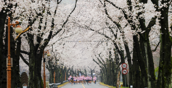 2일 차인 10일에는 아침 7시부터 마이산 남부 벚꽃길 모닝런이 진행됐다. 봄비에 촉촉하게 젖은 벚꽃길을 지나 종착지인 마이산 탑사에 다다르자, 비안개에 휩싸인 돌탑 군락이 뿜어내는 압도적이고 신비로운 풍경에 참가자들 사이에서는 일제히 감탄의 탄성이 터져 나왔다.