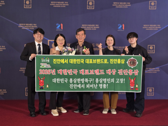 진안군 홍삼제품 공동브랜드 「진안홍삼」이 ‘2026년 대한민국 대표브랜드 대상’인삼제품 공동브랜드 부문에서 선정됐다.