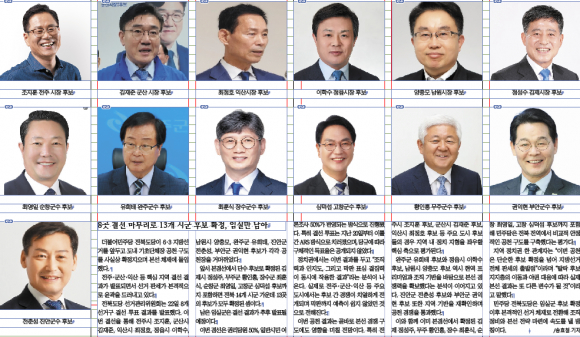 이와 함께 이미 본경선에서 확정된 김제 정성주, 무주 황인홍, 장수 최훈식, 순창 최영일, 고창 심덕섭 후보까지 포함해 민주당은 전북 전역에서 비교적 안정적인 공천 구도를 구축했다는 평가다.