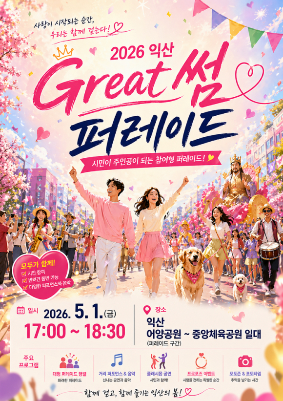 올해 퍼레이드는 ‘참여형’으로 전면 개편된 것이 가장 큰 특징이다. 백제 서동과 선화의 사랑 이야기를 현대적 감성으로 재해석해 ‘사랑’과 ‘썸’을 주제로 한 스토리텔링을 도입했다. 서동과 선화가 시간의 균열을 넘어 2026년 익산으로 이동한다는 설정을 바탕으로 전통과 현대를 연결하는 서사 구조로 퍼레이드가 전개된다.